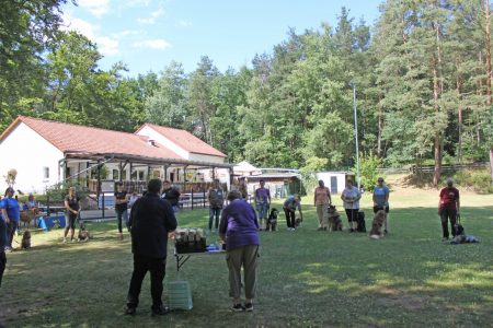 Weiter geht es. Die 21 Starter der Klasse Beginner stehen gespannt am Platzrand und warten darauf den Parcours begehen zu dürfen. Das Startsignal kommt und alle gehen konzentriert auf den Platz. In dieser Klasse starten 6 Teilnehmer für unseren Verein.