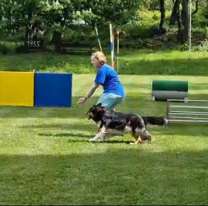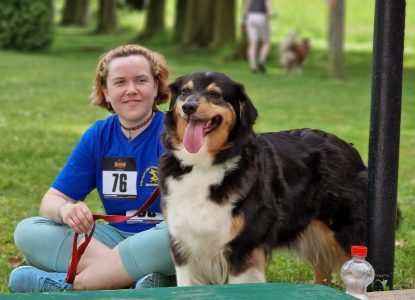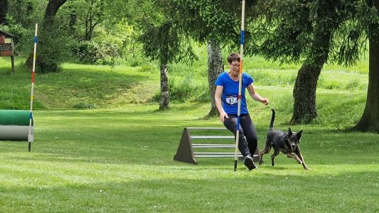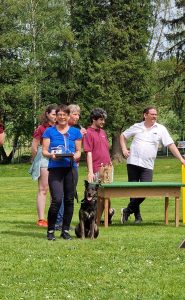 Mit ihrer Hündin Lia startete die siebzehnjährige Katharina Theißinger im Geländelauf 2000m. Sie absolvierte die Strecke mit einer super Zeit von 8,25 Minuten und belegte in ihrer Altersklasse weiblich ab 15 den 1.Platz.