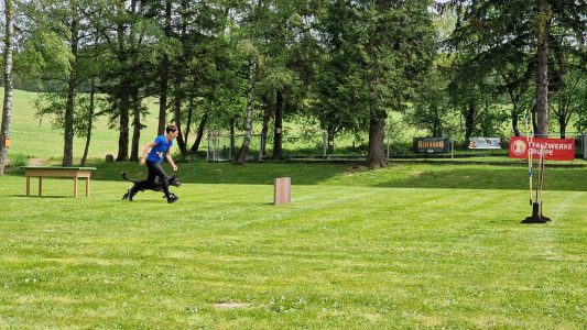 Zu Beginn legte die elfjährige Jil Armbrecht mit Joey die THS-Vorprüfung Teil A ab, welche beide mit Bravour meisterten. Damit war der Weg frei für einen Start im Geländelauf.