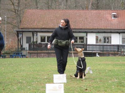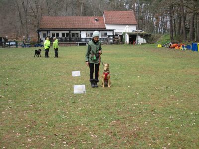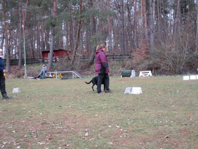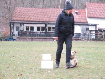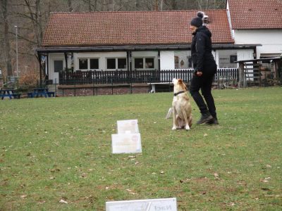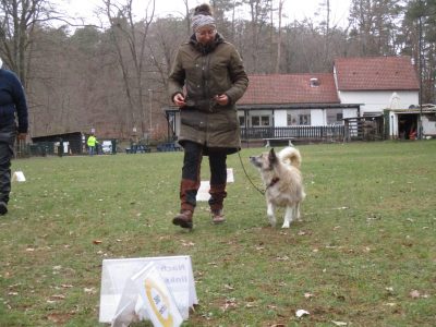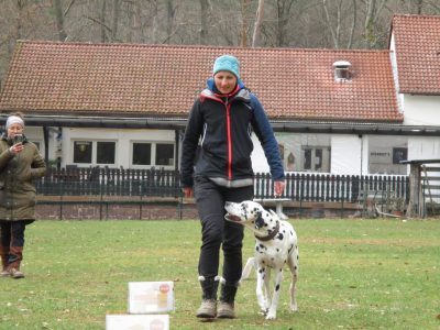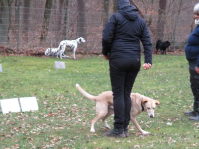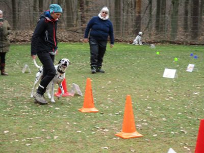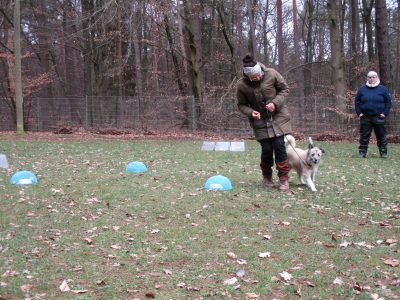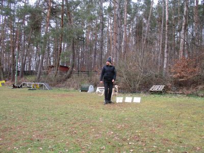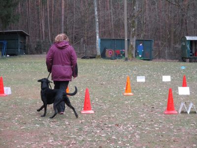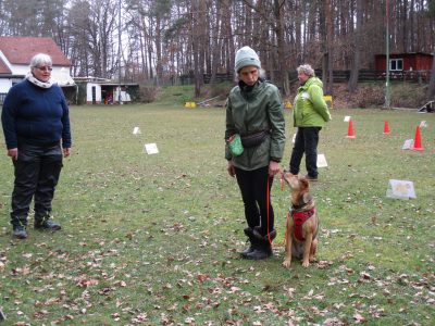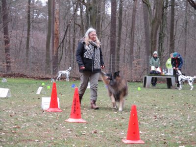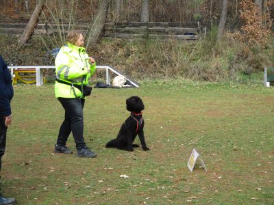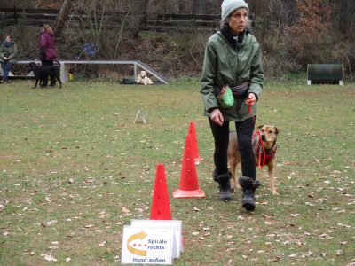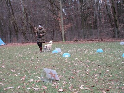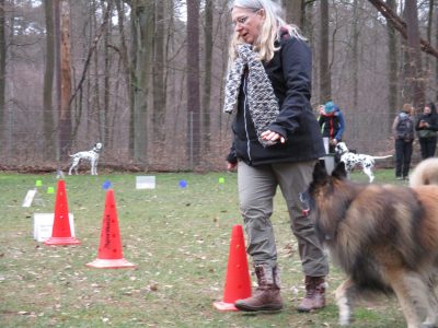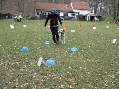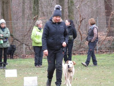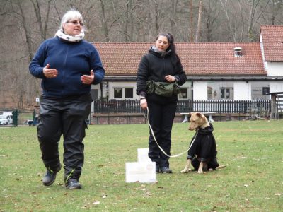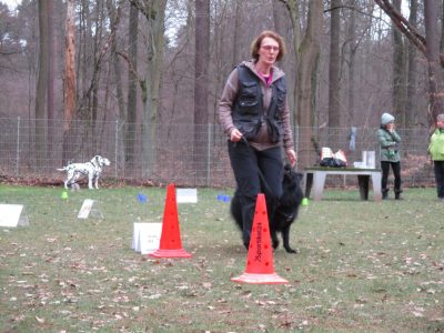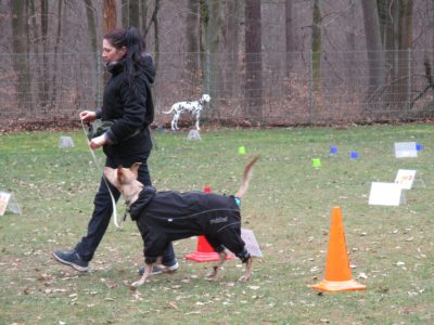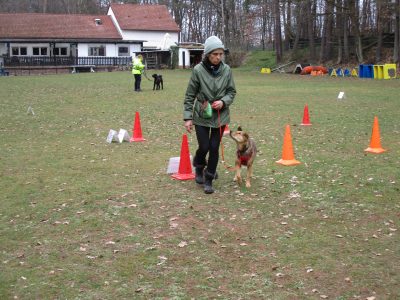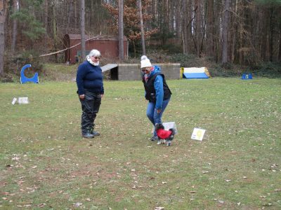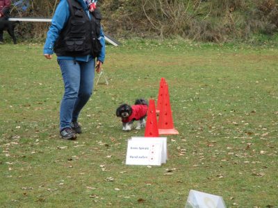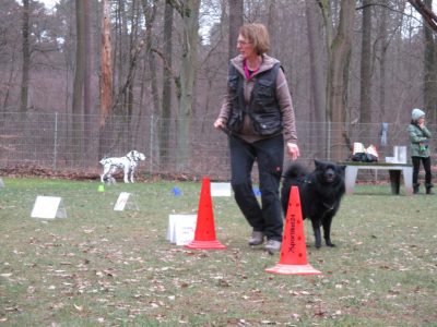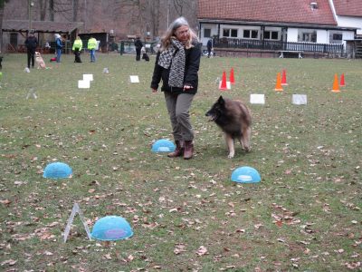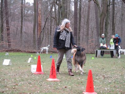 Aufgebaut wurde ein großer Beginner Parcour, den jedes Mensch-Hund Team unter Anleitung von Michaela Konrad meistern durfte.