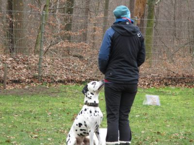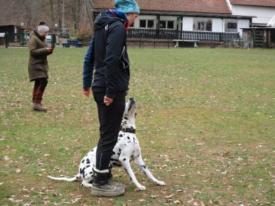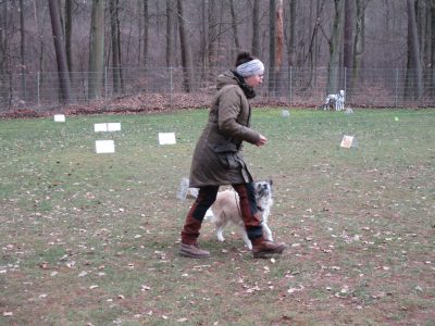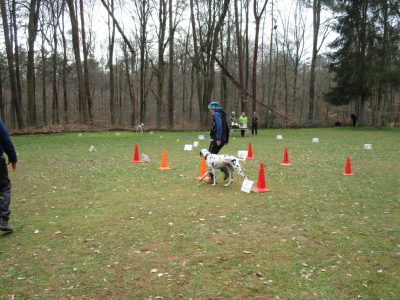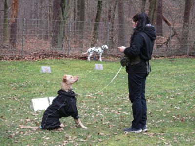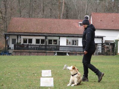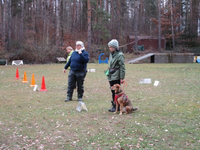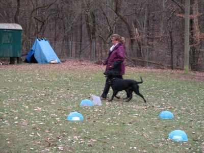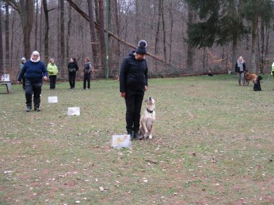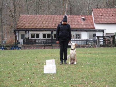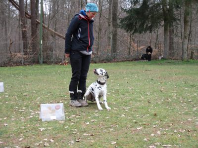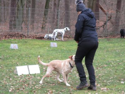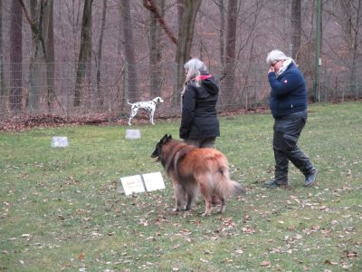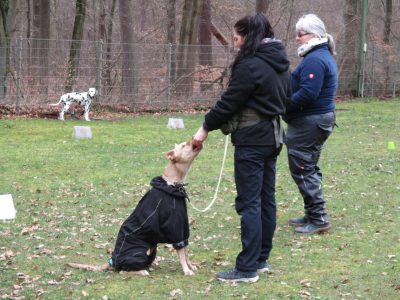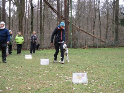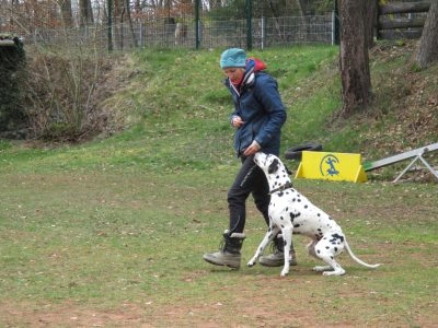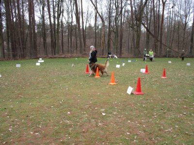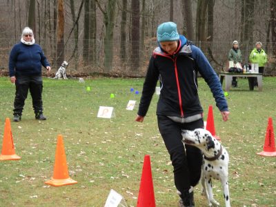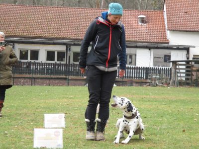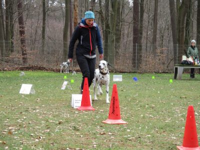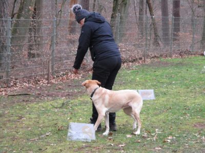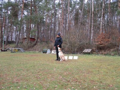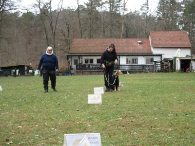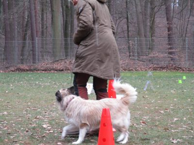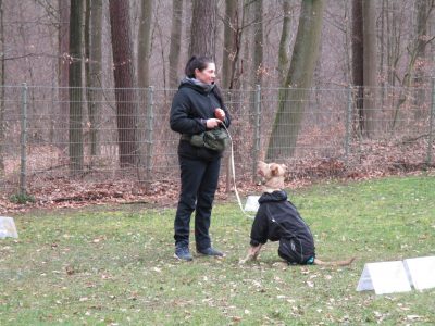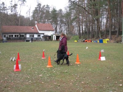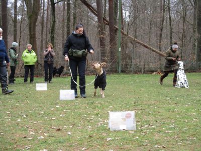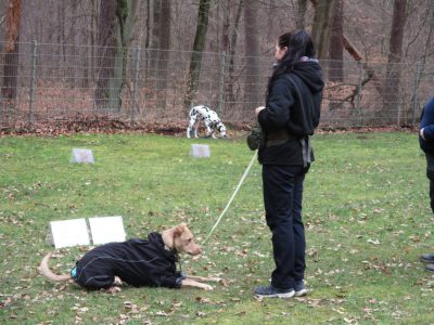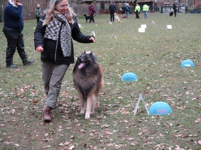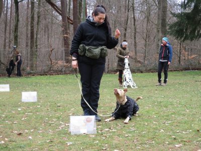 Aufgebaut wurde ein großer Beginner Parcour, den jedes Mensch-Hund Team unter Anleitung von Michaela Konrad meistern durfte.