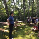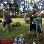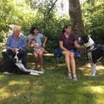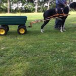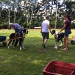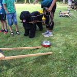 Die anwesenden Gäste bekamen eine Einführung in den Zughundesport auch genannt „6 Schritte zum Zughund“. Vom Anziehen des Zuggeschirrs, anhängen eines Reifens, gewöhnen an Satteltaschen, probieren mit der Übungsdeichsel, ziehen eines leichten Wagens (Einachser) und schließlich zum heißersehnten Ziel des Zughundeteams: Ziehen eines Bollerwagens.